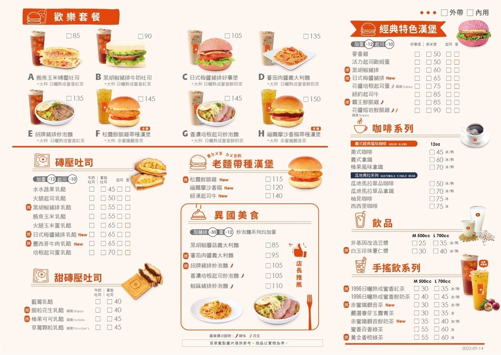 點餐區上方亦有設置超人氣早午餐組合,方便內用、外帶的朋友們選擇。