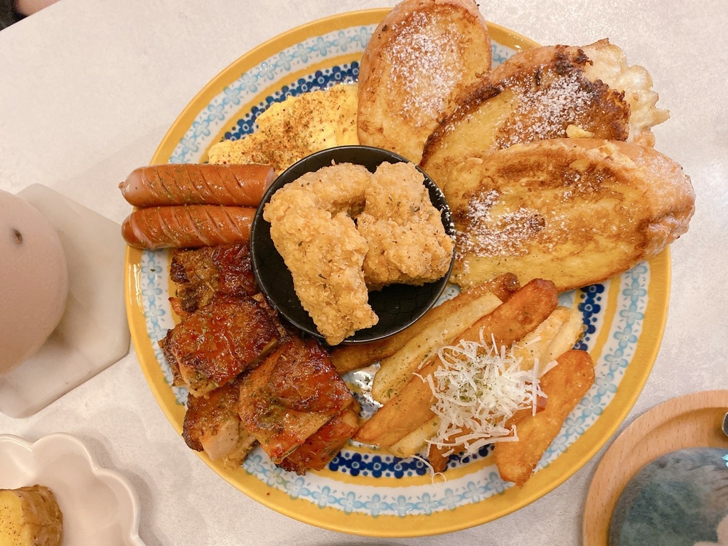 餐點選擇非常多,菜單看得眼花撩亂、無法輕易決定,有王牌蛋捲、班尼迪克蛋、法國爺爺私房菜、厚甲胖、各式炸物等配餐,就是要讓你吃好吃滿!