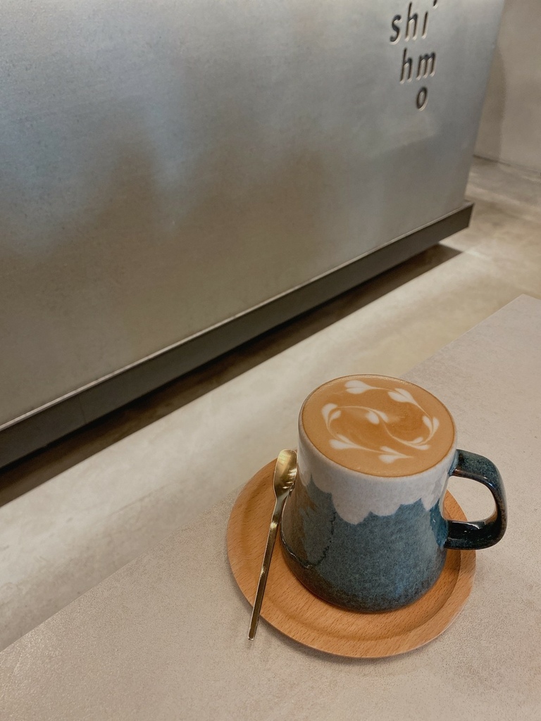 可愛的類富士山杯子與上頭的拉花,讓人捨不得喝~