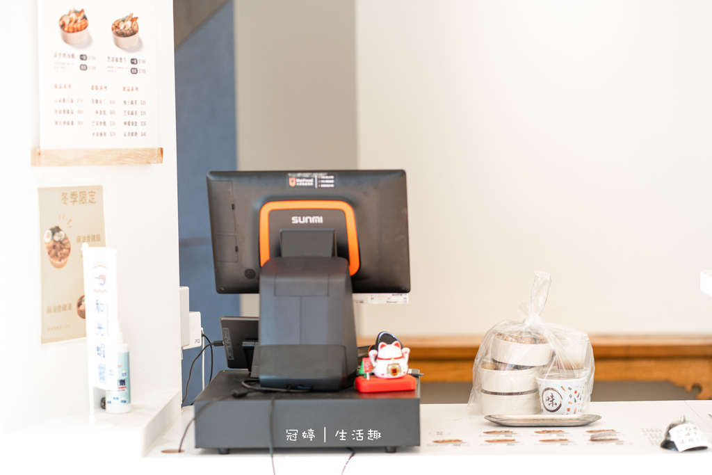 主推外帶美食、外送美食的杉盒便當製所,店內空間以純白色系為主調,給予每位走進店內點餐的朋友們,愜意、放鬆的感覺,可在一旁設立的座椅稍坐等候。