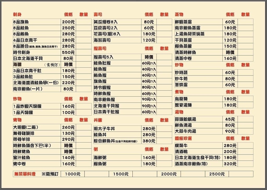 旨味日式料理菜單(實際營業資訊依店家公告為主)