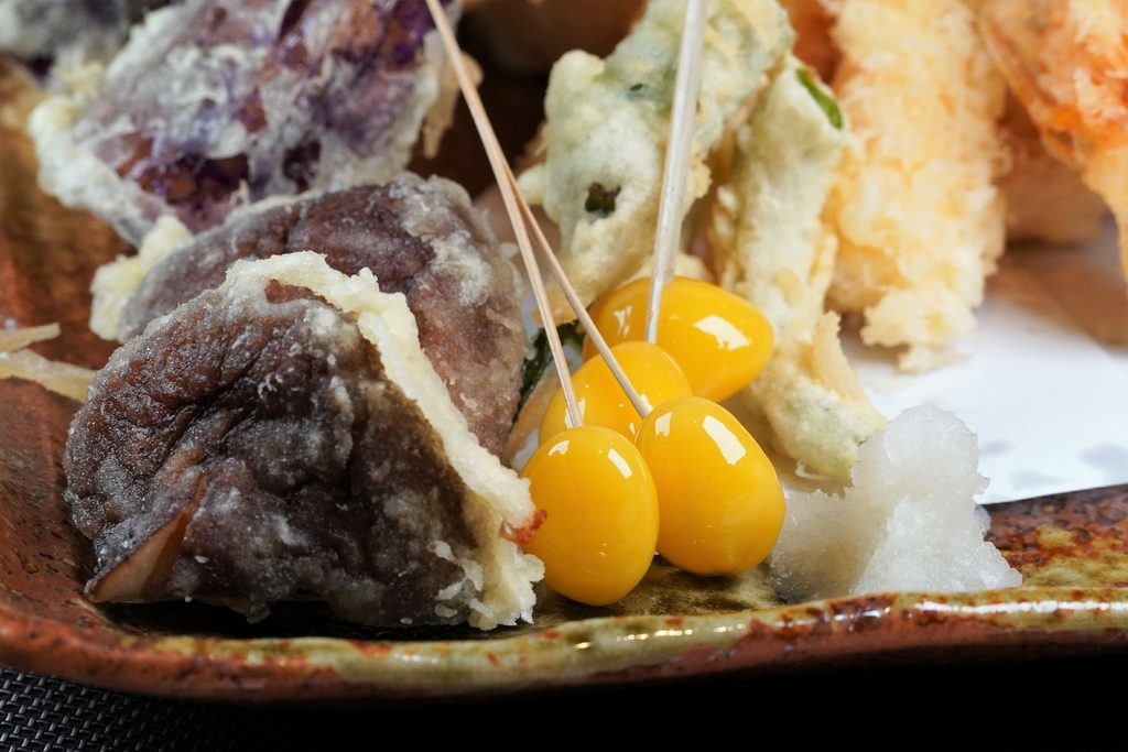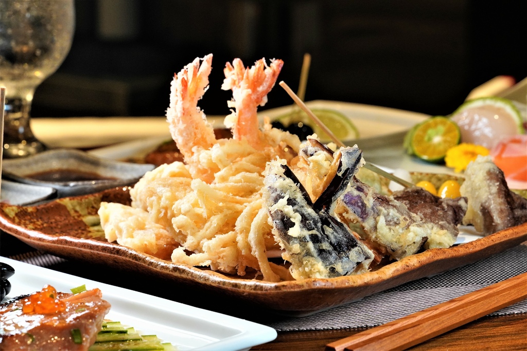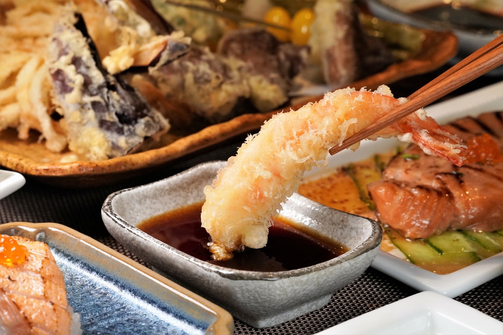 除了金黃香酥的炸蝦之外,同時還可以吃到金針菇、香菇、地瓜、青龍、茄子這些時蔬,旨味日式料理的粉薄薄的一層很剛好炸的酥酥的,一上桌熱呼呼的沾上一點天婦羅醬汁超涮嘴。