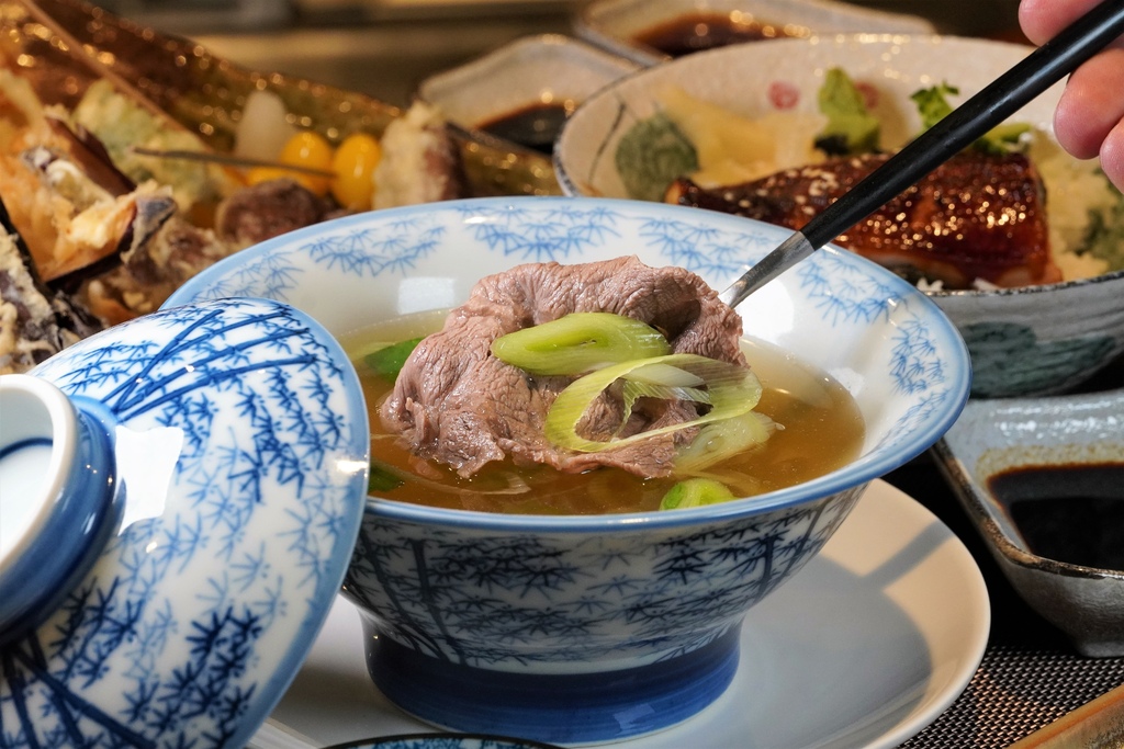 旨味日式料理這牛肉湯真心推薦大家一定要點來喝,以柴魚、昆布熬煮而成清透的湯底再加入大量的蒜苗,牛肉本身烹煮的熟度也掌握的恰到好處,真的喝了會上癮的呀!