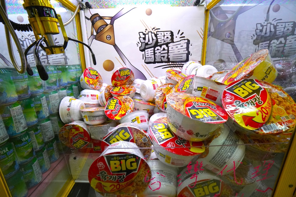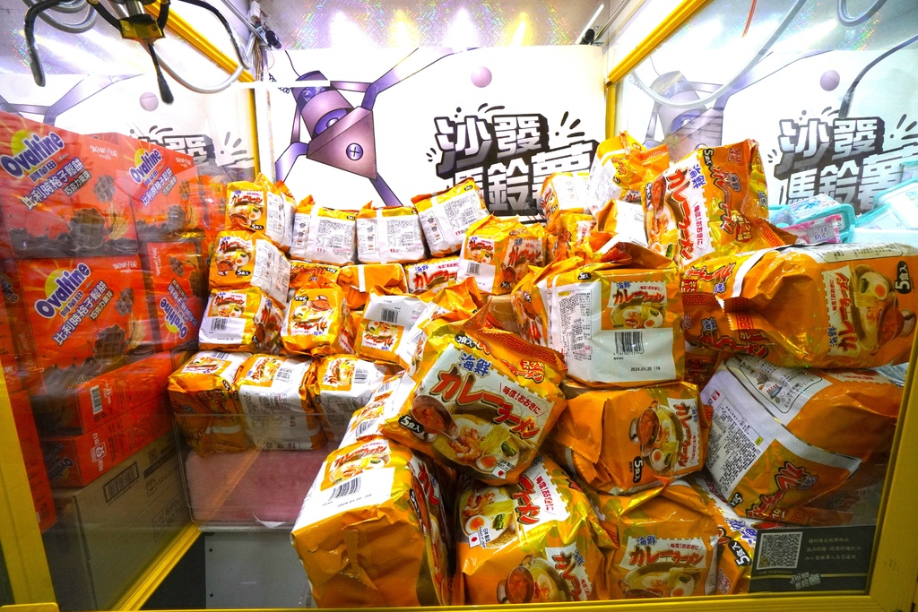 還有不少大家熟悉的日韓泡麵也能夾~而且沙發馬鈴薯樂園的洞口沒有高牆,這些獎品根本就是自己都要滾進去了,看了就讓人特別手癢想要夾,是不是真的很欠夾。