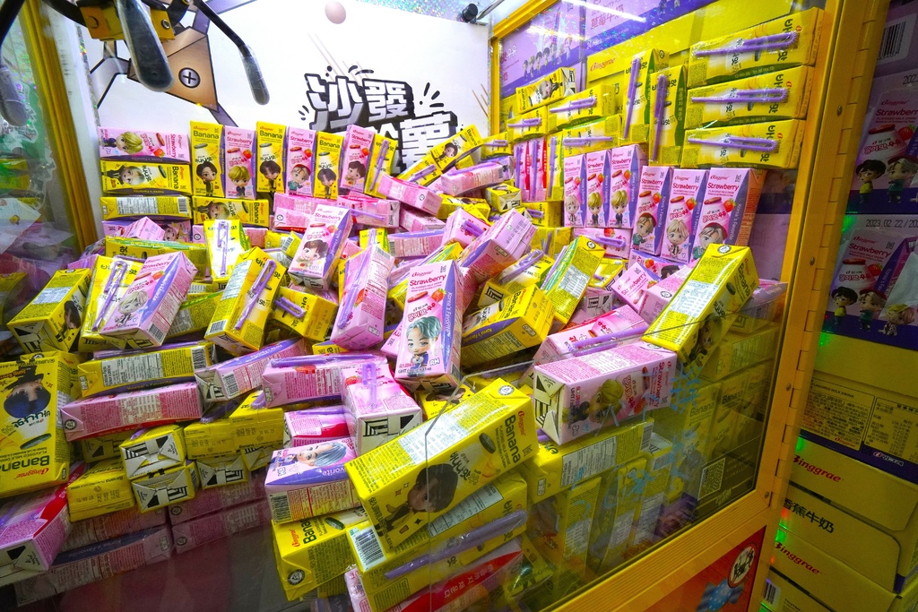 一進到沙發馬鈴薯樂園我就立馬衝到這人氣NO.1的韓國香蕉牛奶這兒~這可是超級熱門機台,而且現在還是跟BTS聯名的包裝怎麼能不夾啦!我在這台夾了好一會兒後面已經大排長龍也是想要夾的人。
