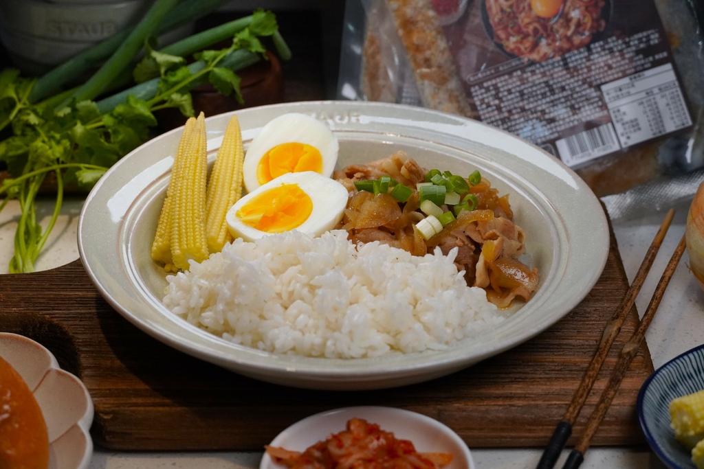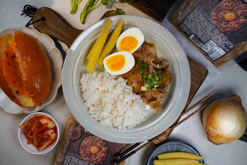 北澤壽喜燒X大成集團的超強聯名的黑蜜豬壽喜燒一包剛好一人份吃一餐,我自己再煮個水煮蛋跟燙個青菜,鹹鹹甜甜的口味不管是大人小孩都會非常喜歡,愛吃辣的朋友可以再加些辣椒或來點韓式泡菜也很對味哦!