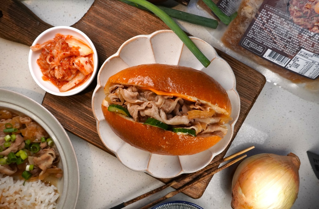 另外小金也很推薦大家可以用北澤壽喜燒X大成集團的超強聯名的黑蜜豬壽喜燒搭配麵包,小金有看到網路上不少人分享搭配吐司跟法國麵包也很讚,這次我買了潛艇堡麵包裡頭再配上一點黃瓜片跟起司片~好吃到友人都說可以直接開店了~