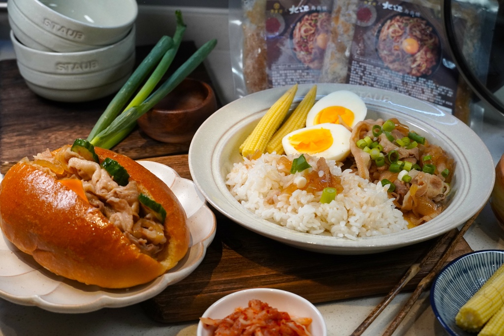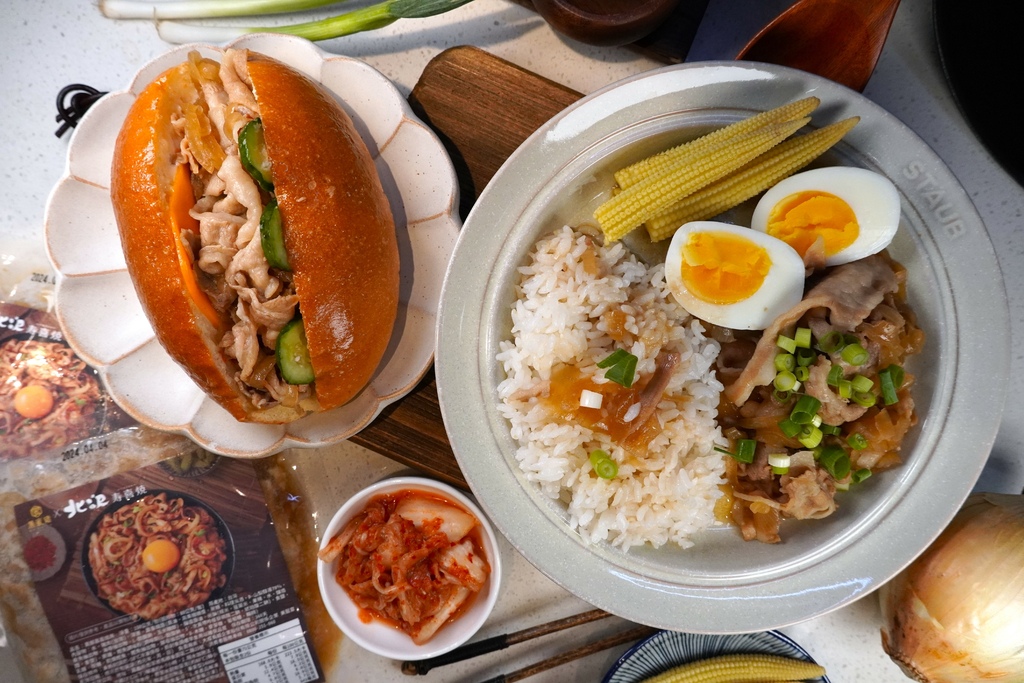 這次小金訂了北澤壽喜燒X大成集團的超強聯名的黑蜜豬壽喜燒打算來跟大家分享一下不同的吃法,我這次一份用了「潛艇堡」的吃法,另一份就做成有點像是簡餐的方式,再配些蔬菜不到十分鐘就可以上桌,這對於上班族來說太重要了~可以簡單上菜。