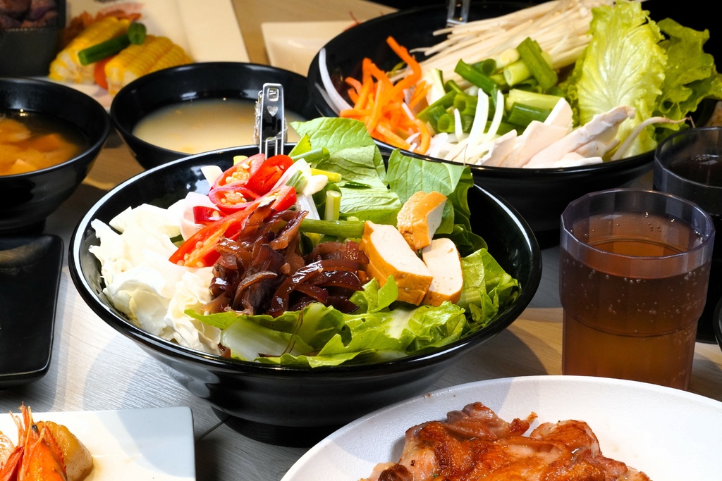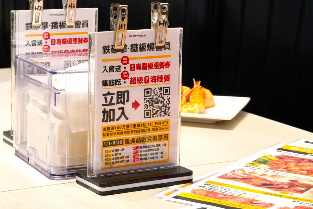 服務人員帶入座後大家記得可以掃碼加入他們官方的LINE立刻就可以獲得好康優惠券,當天的消費也可以集點免費換食材,另外就可以拿好上頭的夾子到自助吧區取餐囉!