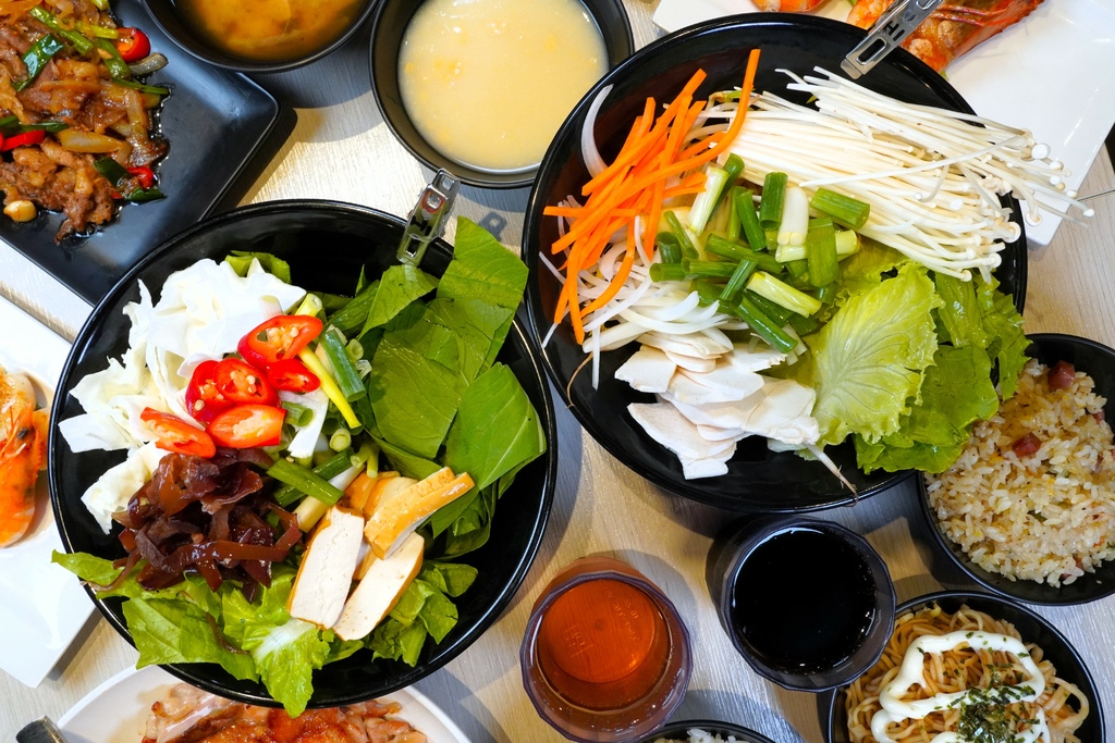 鐵砂掌新鐵板料理蔬菜吧的選擇也會依不同的季節提供變化,除了豐富的蔬菜之外還有季節水果、蛋糕點心可以吃,吃貨們真的太有福了。