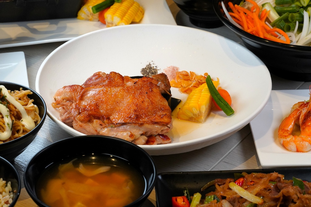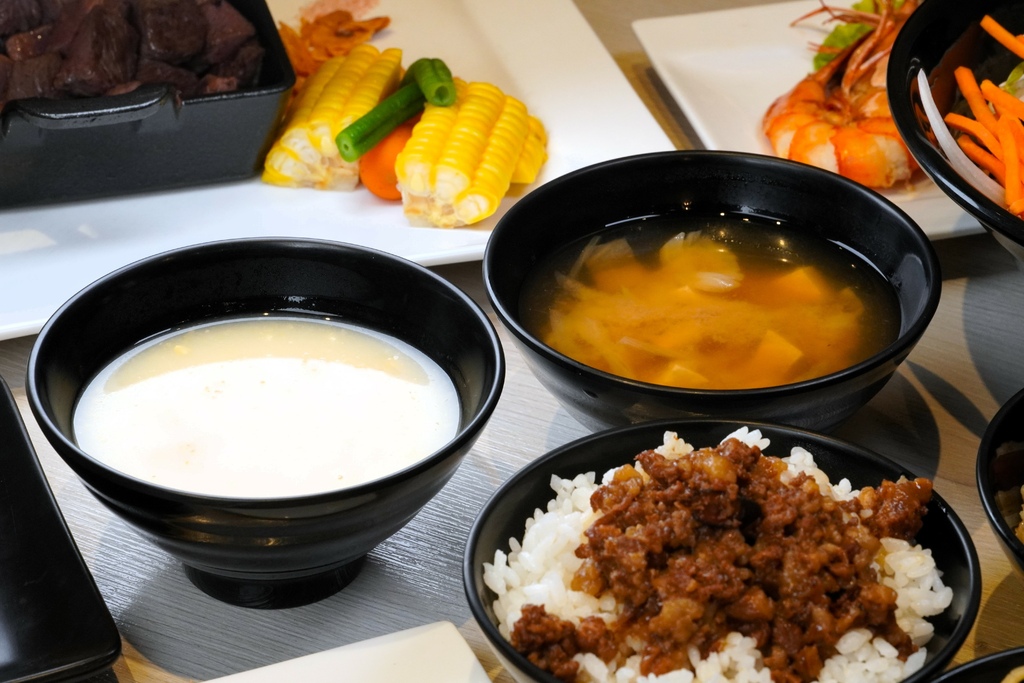 東方人好好吃頓飯絕對不能少喝上一碗熱呼呼的湯,鐵砂掌新鐵板料理的湯也是誠意十足,不管是香濃的玉米濃湯還是鹹香的日式味噌湯裡頭的料也是大把大把的加不怕客人喝,這CP值到天花板了吧!