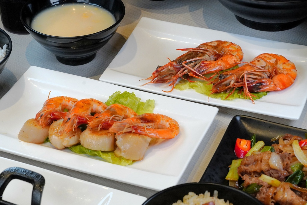 鐵砂掌新鐵板料理有不少海陸套餐選擇,這可以滿足想吃海鮮又想大口吃肉的朋友,小金選的這套餐包含有香煎板腱牛排、大蝦*2、白蝦*4、干貝*4,所以來這裡想吃飽還是想吃好料都沒問題。