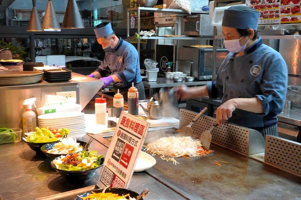 如果是一個人來吃的朋友,鐵砂掌新鐵板料理也有規劃了吧台式座位區,當然不是一個人想要坐這裡邊吃飯邊欣賞窗外的車水馬龍也是沒問題的。