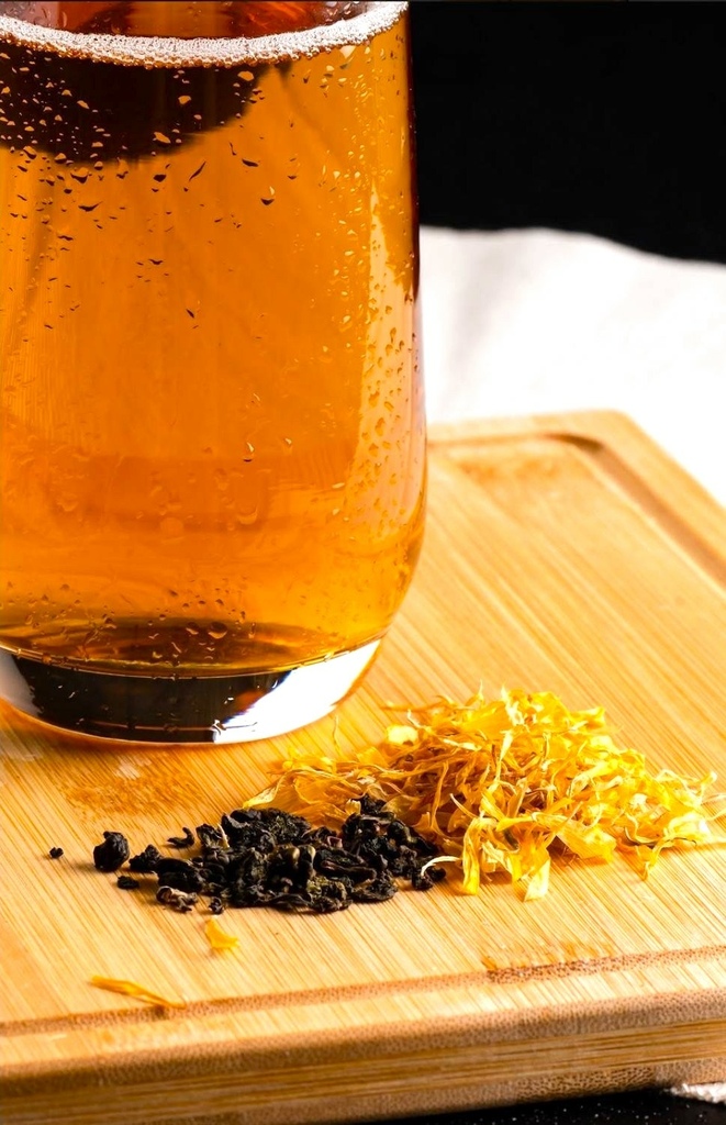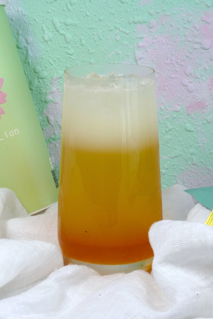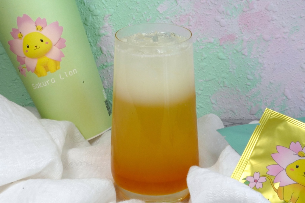 櫻花獅手作茶飲還有一款超人氣的茶飲,以輕焙烏龍茶為基底再加入金盞花,那虎珀色的茶湯真的光看上去就非常誘人,愛美跟注重養生的人對金盞花一定不陌生,這杯肯定是要喝起來的啦~
