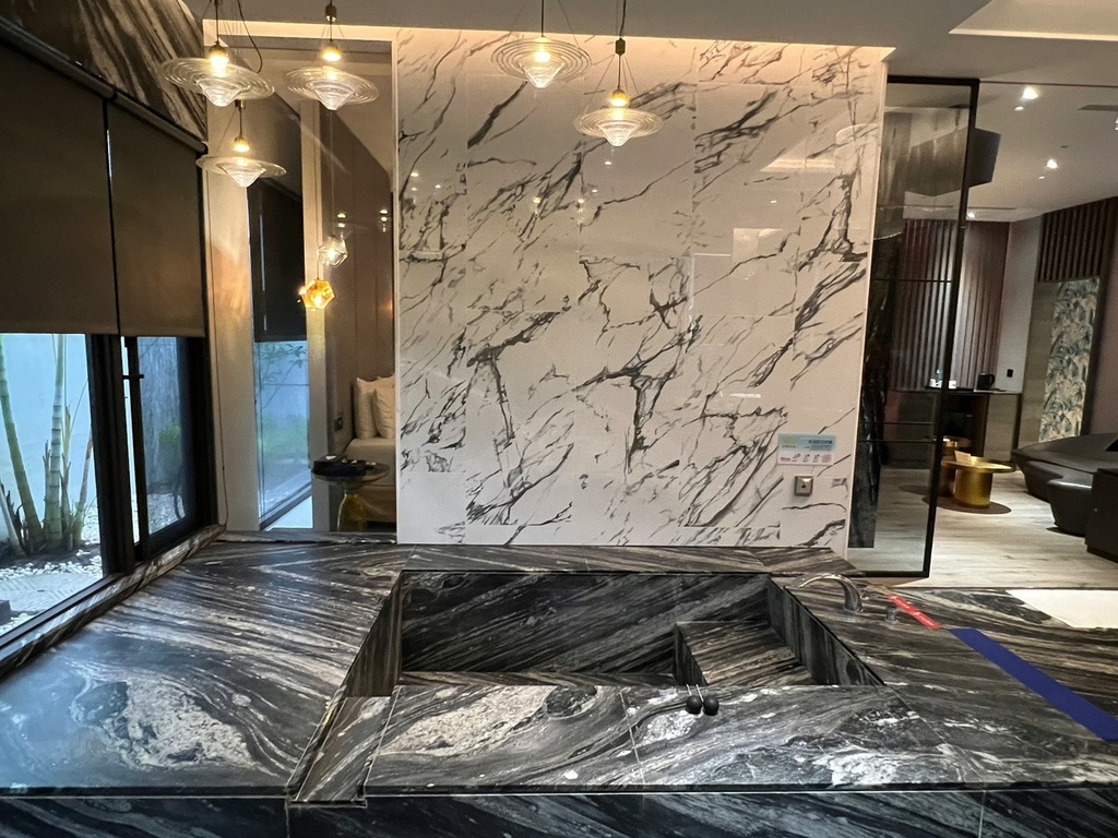 這個偌大的浴缸,空間真的好氣派,寬敞沒有壓迫感,裝潢設計真的超高質感,宛如高級豪宅一樣,走一種東方美學的路線!