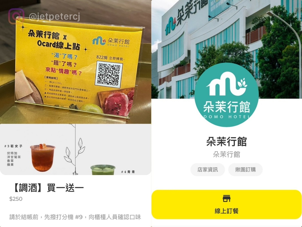 買了一堆台中美食回房間大快朵頤,朵茉高顏值調酒活動期間買一送一,只要$250 元頗划算(喝酒不開車!未成年請勿飲酒)