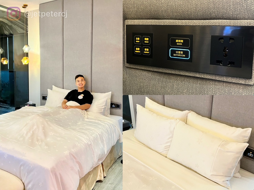 超級有彈性,枕頭也很好躺,一旁還有控制房內的開關、以及萬國插座,不用下床就可以輕鬆開關電燈~
