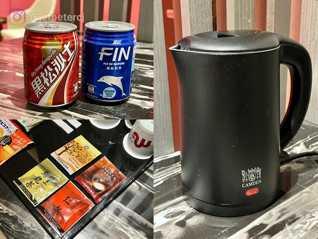 房內也提供小點心、茶包咖啡等多樣化選擇,唱歌渴了餓了都可以先果腹一下,我看也有客人透過外送平台訂餐