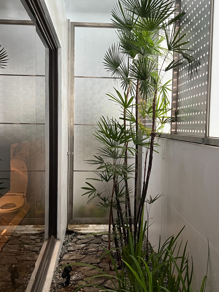 外頭的庭院造景相當用心維護,通通都是活體植物,每間設計風格都不同,營造出綠意盎然的住宿環境