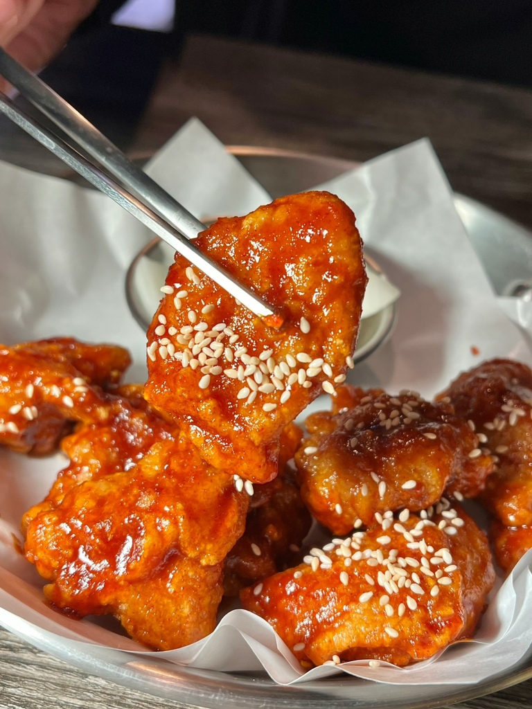 2.裝潢充滿韓流,歌曲也相當好聽,燈光點綴下超有fu!辣味蜂蜜炸雞真的好涮嘴,甜中帶辣吃起來不會油膩,搭配爽脆解膩醃蘿蔔,真的太完美的組合,外帶回家配韓劇超滿足