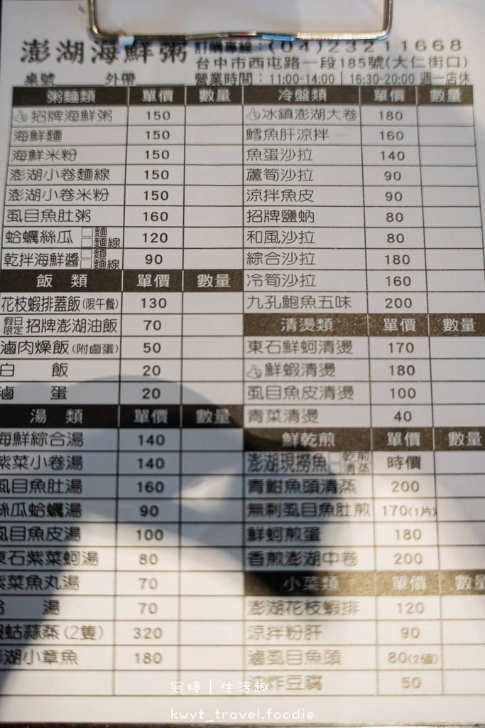 本文同步發表於:【澎湖海鮮粥】隱藏版極鱻小卷米粉,台中北區美食小吃推薦,海鮮控口袋裡的百元海鮮料理,台中北區午餐晚餐推薦│菜單