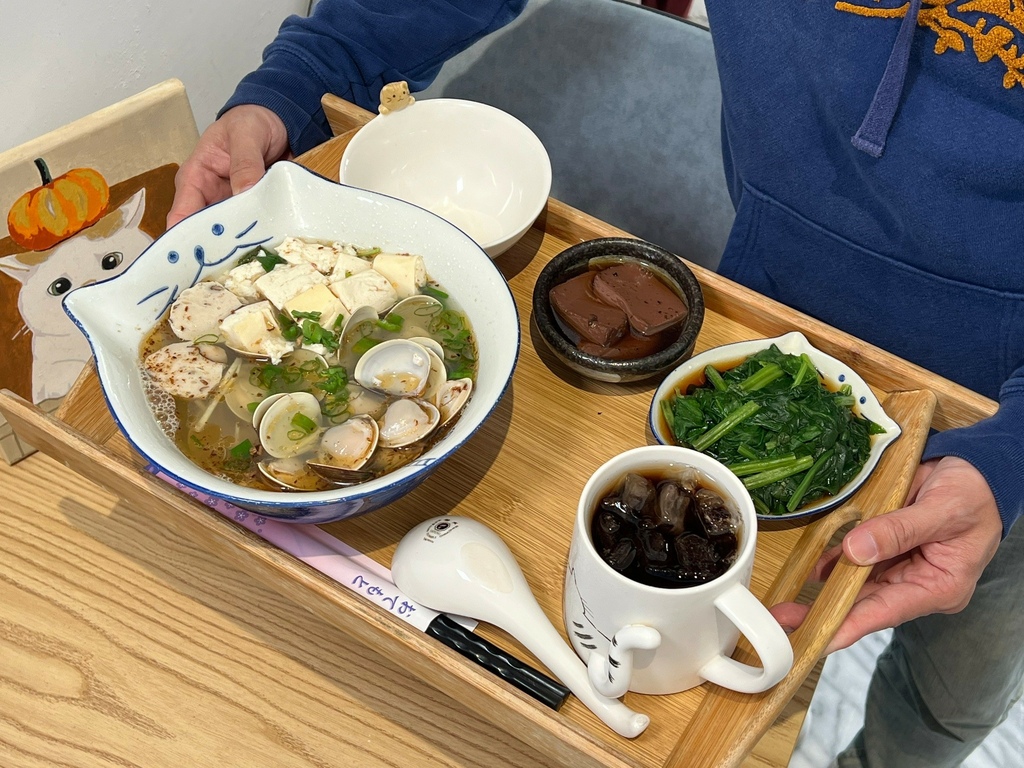 4.充滿貓咪特色的裝潢,是貓派的天堂,每個小角落都有貓咪的元素!店貓弟弟個性相當活潑,完全不怕生,可以跟他玩樂,陪伴客人度過開心的時光!自助區提供免費無糖麥茶可以去用,吃完喝上一杯清涼解渴~店家態度親切熱情,好像到朋友作客一樣,吃完後還會想要再訪的好店