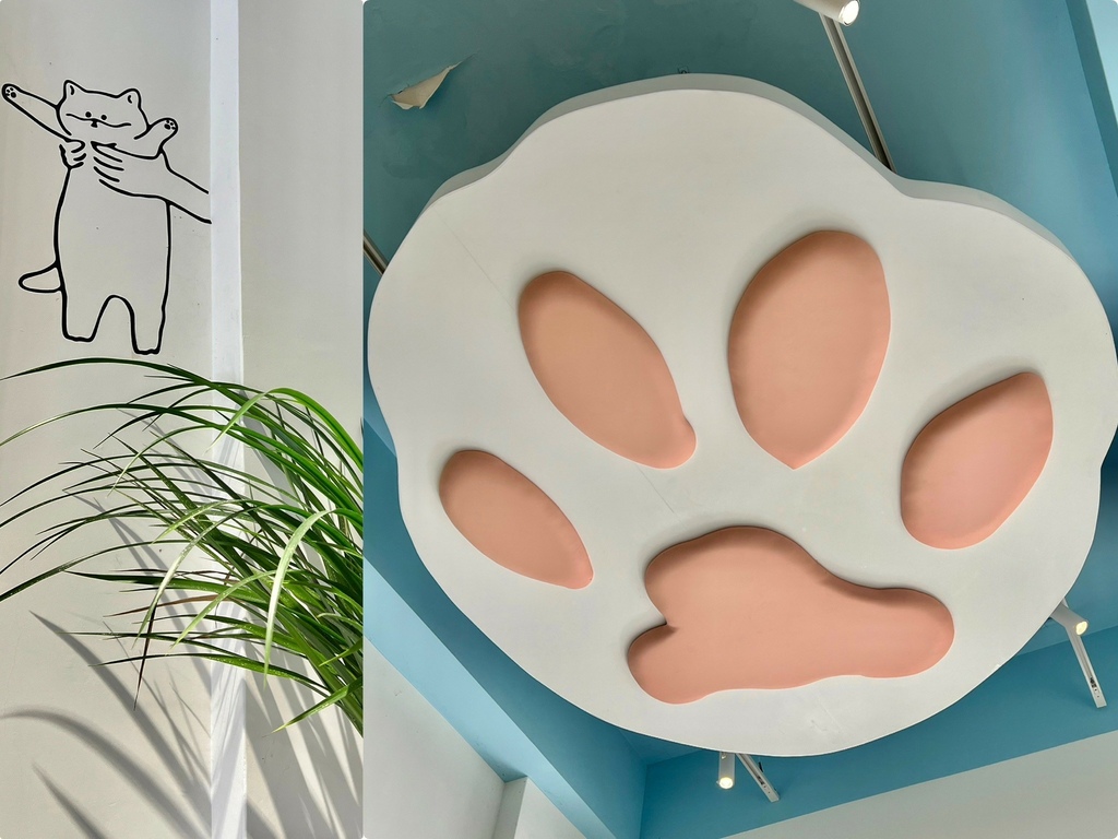 .外觀就充滿貓咪元素,一走入店內更是嘆為觀止,一抬頭看居然有超大的貓掌,怎麼那麼萌啊!身為貓派一員真的來對地方了