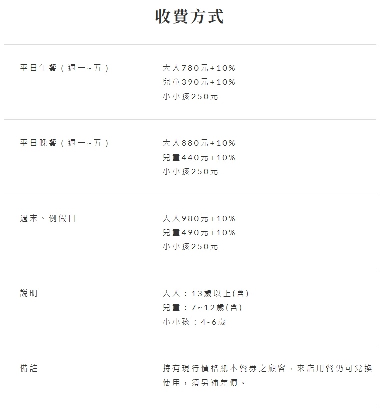 新天地樂食百匯收費標準(實際營業資訊依店家公告為主)