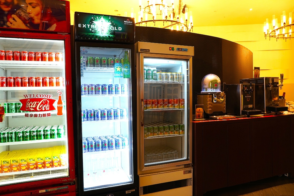 一走進入口處這些瓶裝的飲料跟酒類當然也都是可以無限暢飲喝通海的,罐裝啤酒、生啤酒、水果酒、紅酒…都是無限暢飲,想著等等一邊吃著螃蟹、鮮蝦一邊喝著冰涼的生啤酒就超開心的。