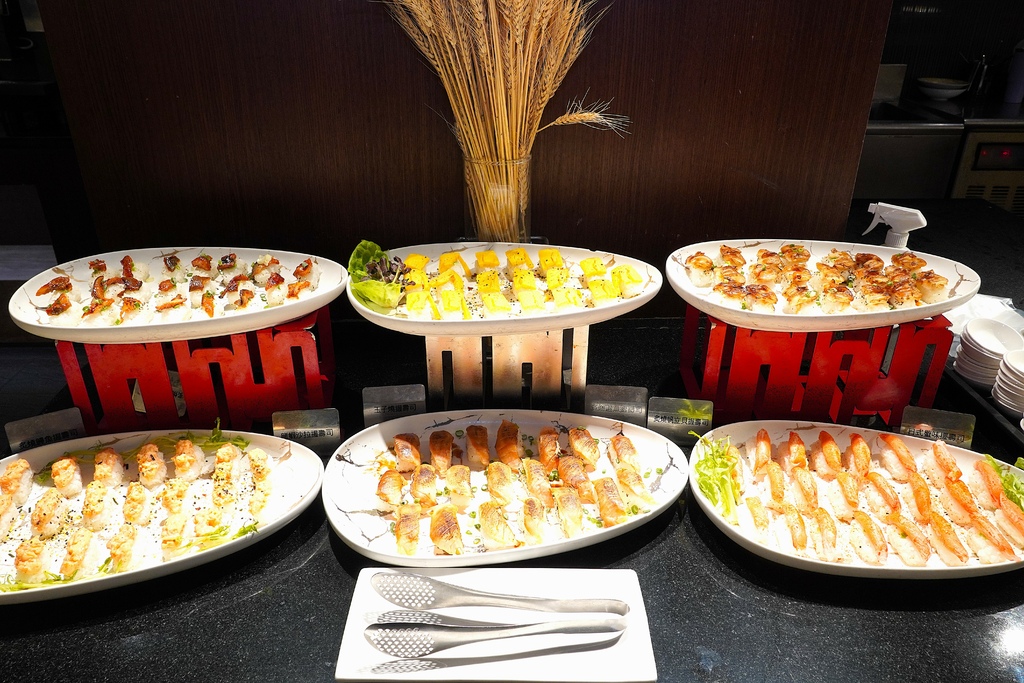 生魚片、握壽司區也是非常熱門的區域,鮪魚、鮭魚、鯛魚、旗魚、黃金飛魚卵…等,壽司則有龍蝦沙拉握壽司、炙燒鮭魚握壽司、炙燒帆立貝握壽司、玉子燒握壽司、炙燒鰻魚握壽司…等,真的是要多來幾次才能夠吃的完全部食材,不過新天地樂食百匯不定期也會更新還有提供季節限定的品項,所以想吃美食來就對了。