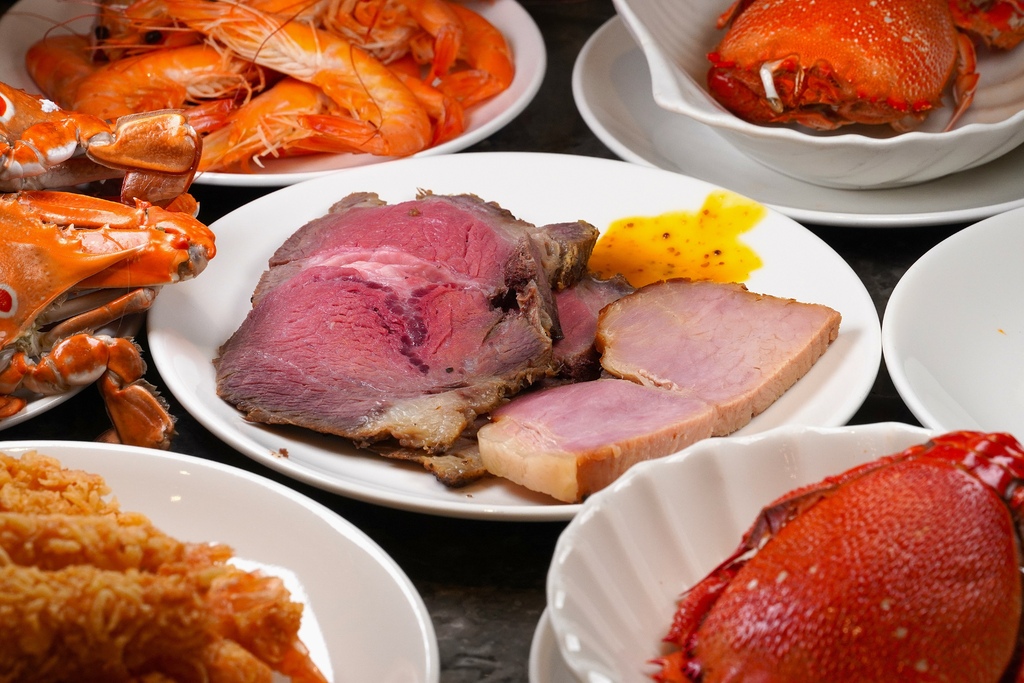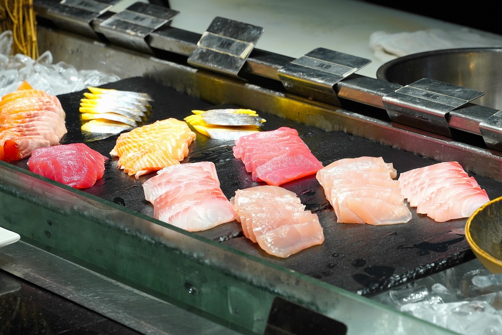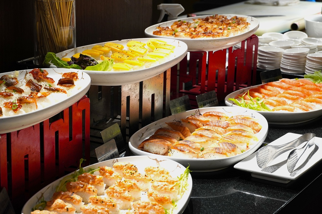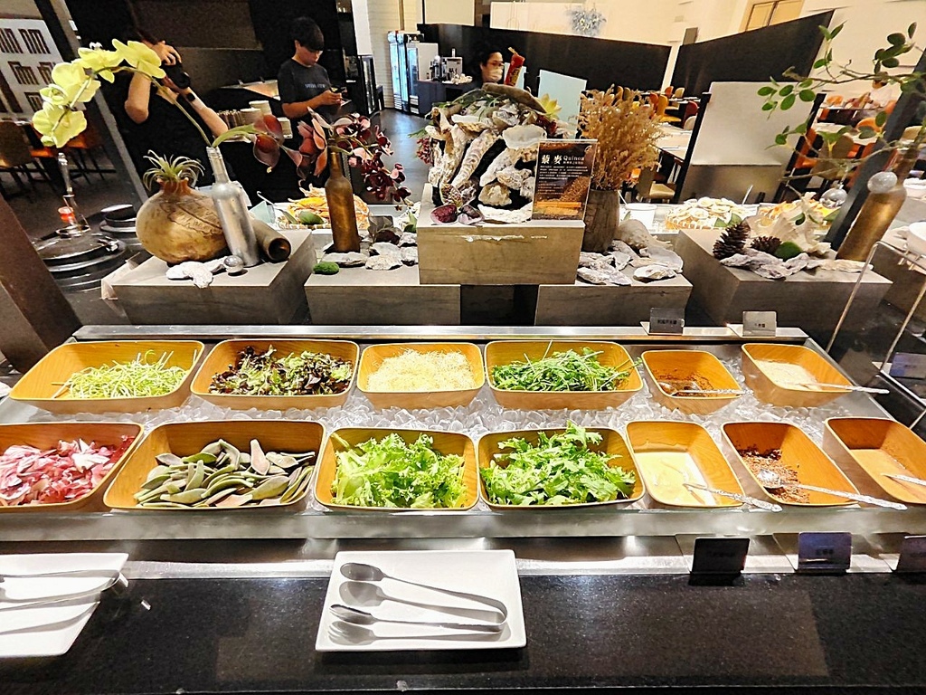 餐點的分佈大致上分為入門處的酒水、甜點區、再來是冷吧區、蔬食區、飲料甜點區、生魚片/日式小品區、現煎烤區、熱炒區、現切區、炸物區幾個主要的區域,一共超過百樣食材料理可以選擇,重點是價位實在是親民,小金就把用餐價格放在文末讓大家看看囉!