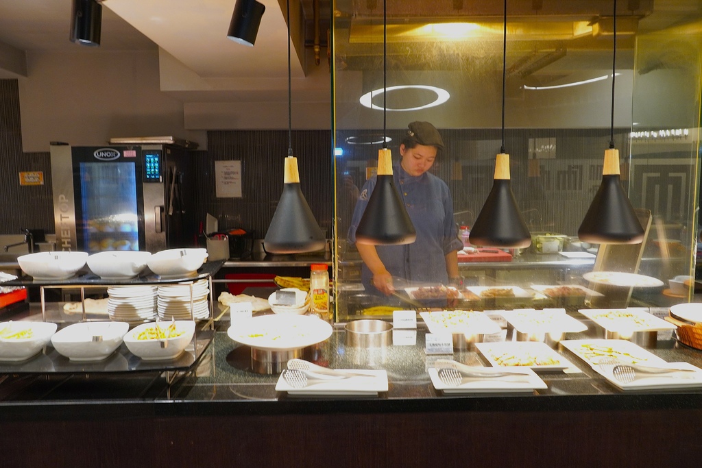 來到取餐區只要看到有放了盤子讓大家夾夾子的地方就知道是現點現做的區域啦~大家一入座可以先把所有的夾子帶上,然後先走完一圈把想吃的現點現做品項都先夾好,這樣拿完其他食材,剛好服務人員也幫大家把做好的料理送上桌啦!