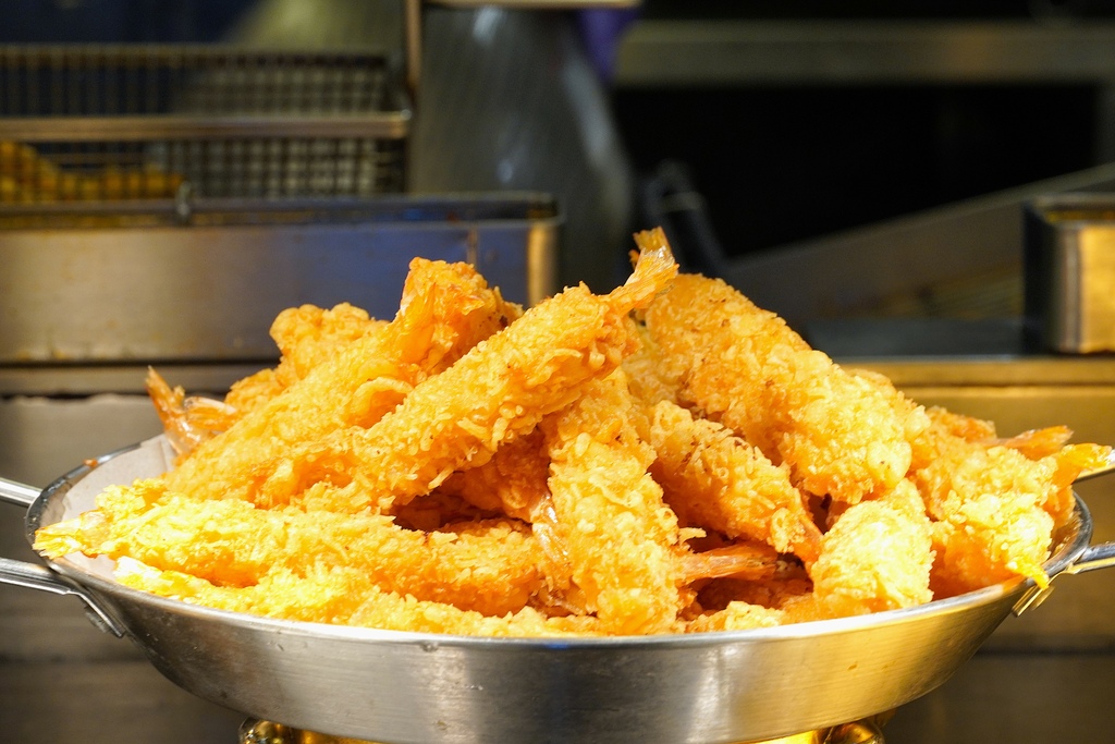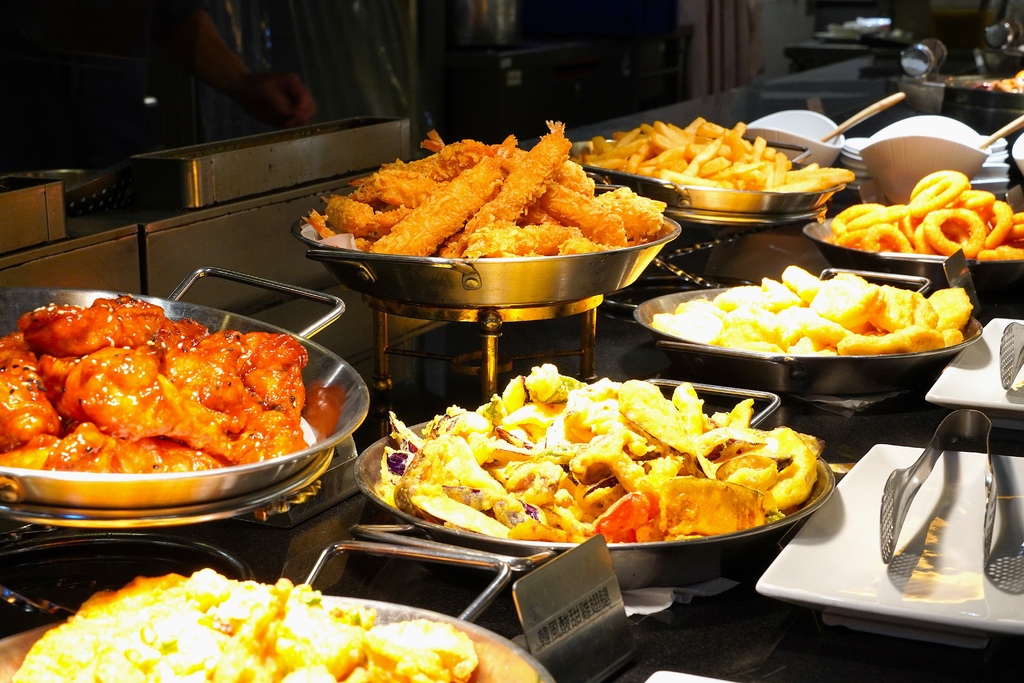 炸物區也是一個迷人的區域,金黃香酥的炸物剛起鍋熱呼呼的又香又酥,特別是這一隻隻香酥的黃金炸蝦,實在是讓人忍不住多拿了幾隻,老天兒啊~新地樂食百匯雖看上去不大,不過提供的品項真的相當的豐富。