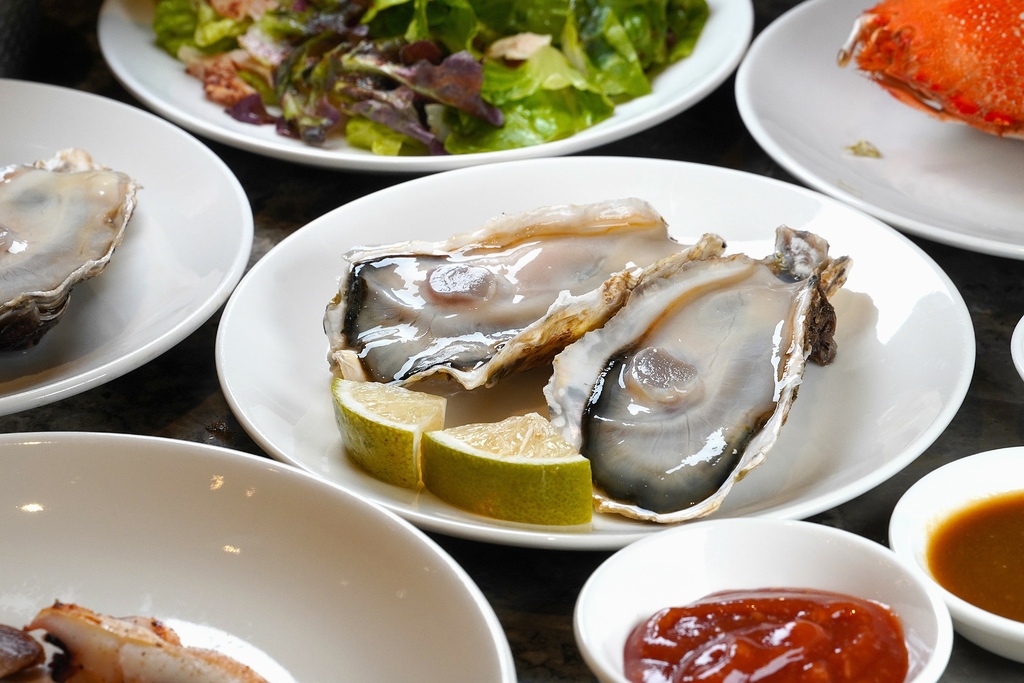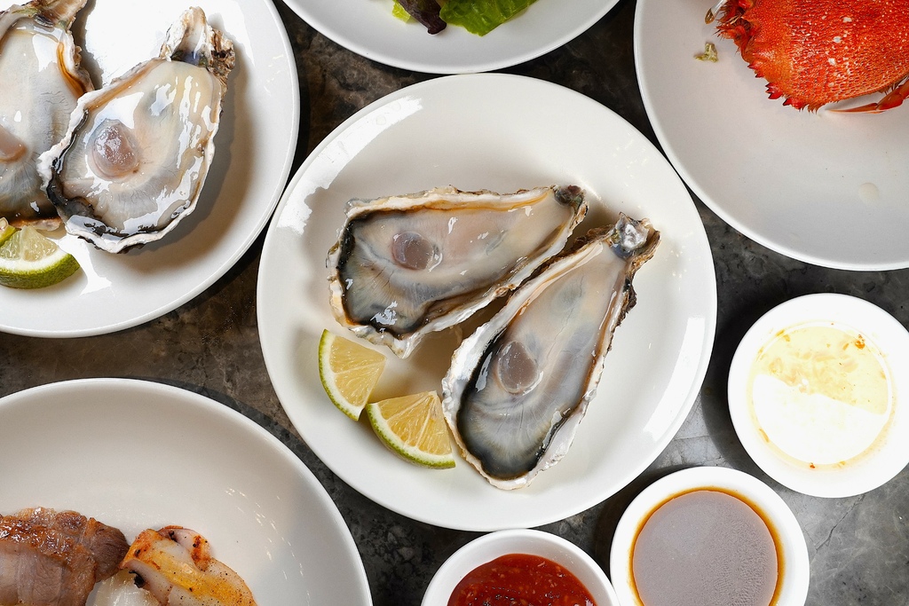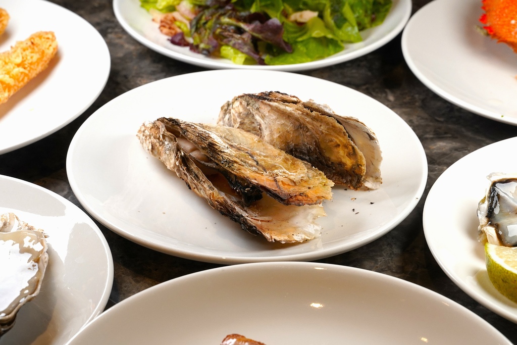 首先要跟大家介紹的重頭戲(晚餐、假日限定)「生蠔」,小金是假日中午過來用餐,中午的話會在12:30時推出來發放,發放前服務人員也會逐桌提醒客人,一次一份是兩顆想要再吃的話就再繼續排隊就可以囉!