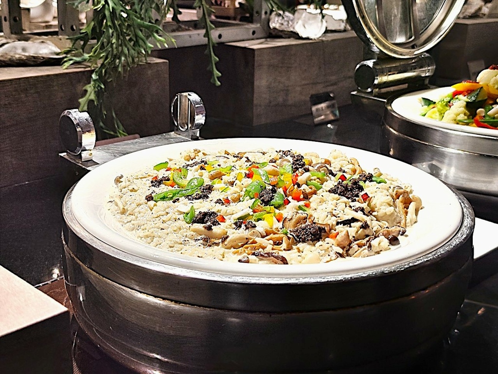 新天地樂食百匯對於蔬食的朋友也是照顧有佳,說真的這些蔬食我吃起來真的完全不感覺自己吃素,像是松露燉飯這超經典美味料理也有耶~另外還有三道不同的燉湯也是蔬食朋友可以吃的,所以聚餐來這裡是不是不用擔心吃不吃牛、吃素的問題,大家都可以吃的很開心。