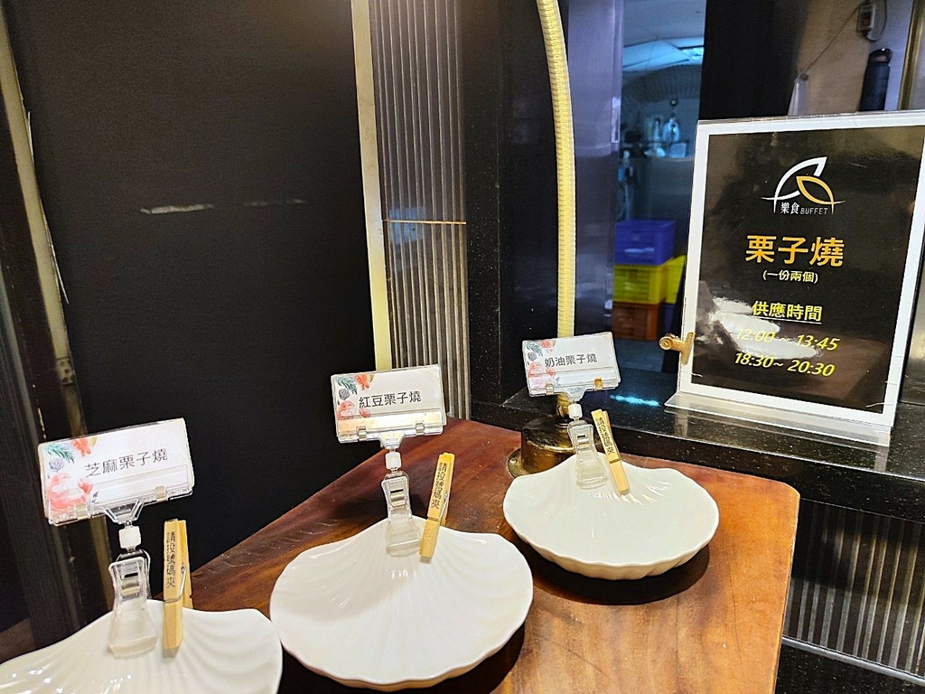最後大家一定不要忘記留一點胃的空間給這個現點現烤的「栗子燒」,有「奶油」、「紅豆」、「芝麻」三種風味可以選擇,供應的時間是有限的喲~所以想吃的朋友記得可以趁早把夾子在時間內拿來放好,再來就是等完成後服務人員送上鬆軟香甜的栗子燒啦!