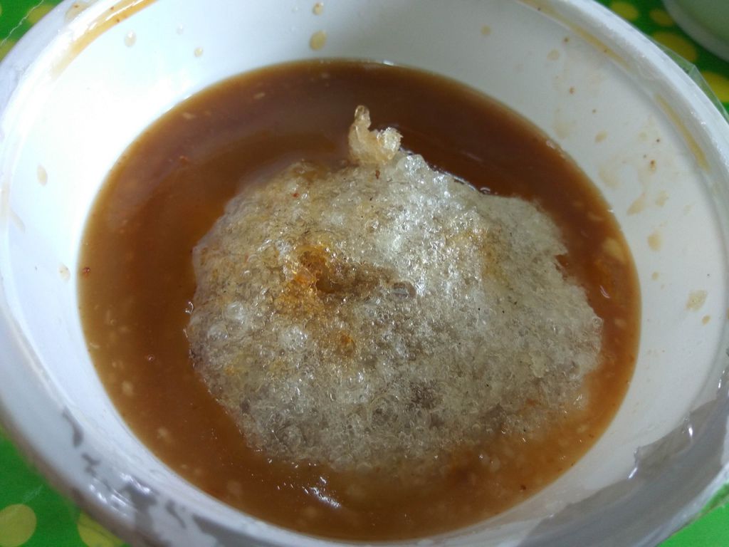 這是我最愛的獨特口感...放在醬汁中浸泡一會兒後, 皮會變軟些...別有一股風味兒~