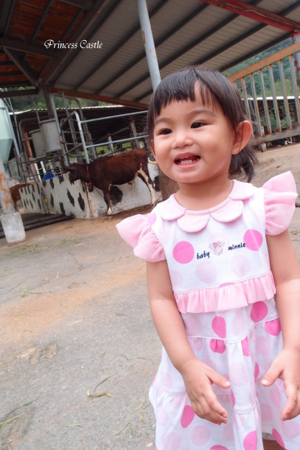才剛吵著說要餵牛~怎麼一到現場就猛縮到拔拔背後去了XD