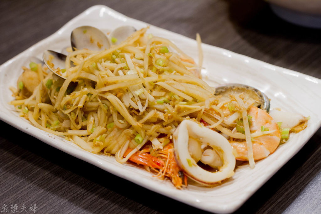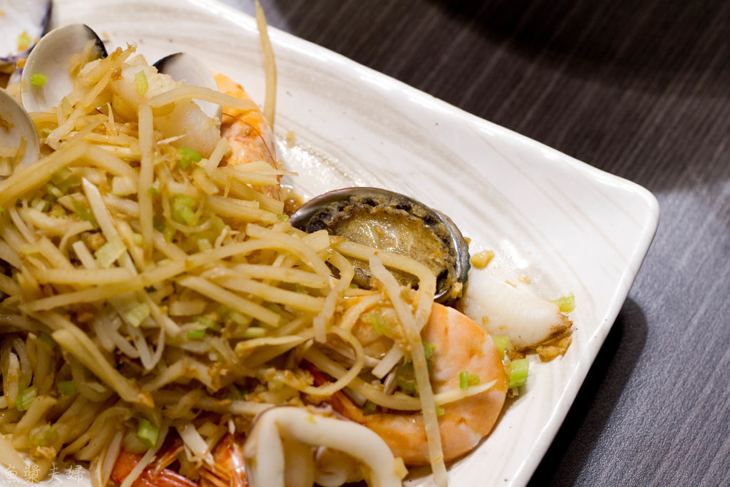 這裡的料就跟海產泡飯一樣,上面鋪了滿滿的筍絲,吃起來原汁原味。海產一樣新鮮,個人蠻愛的,但還是老問題,蒜頭還是一樣蓋掉了一點