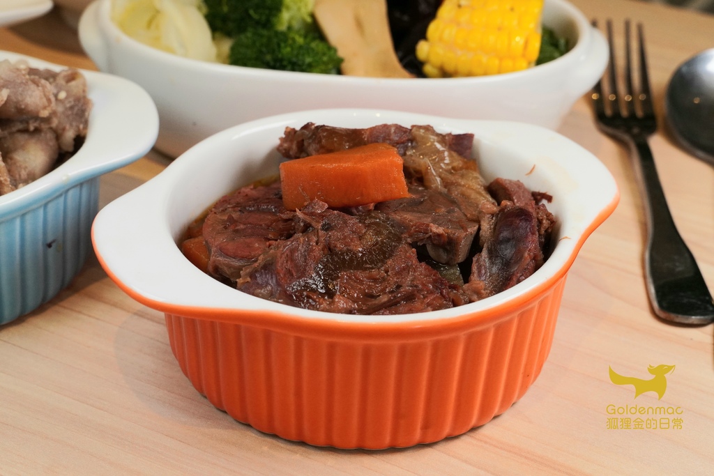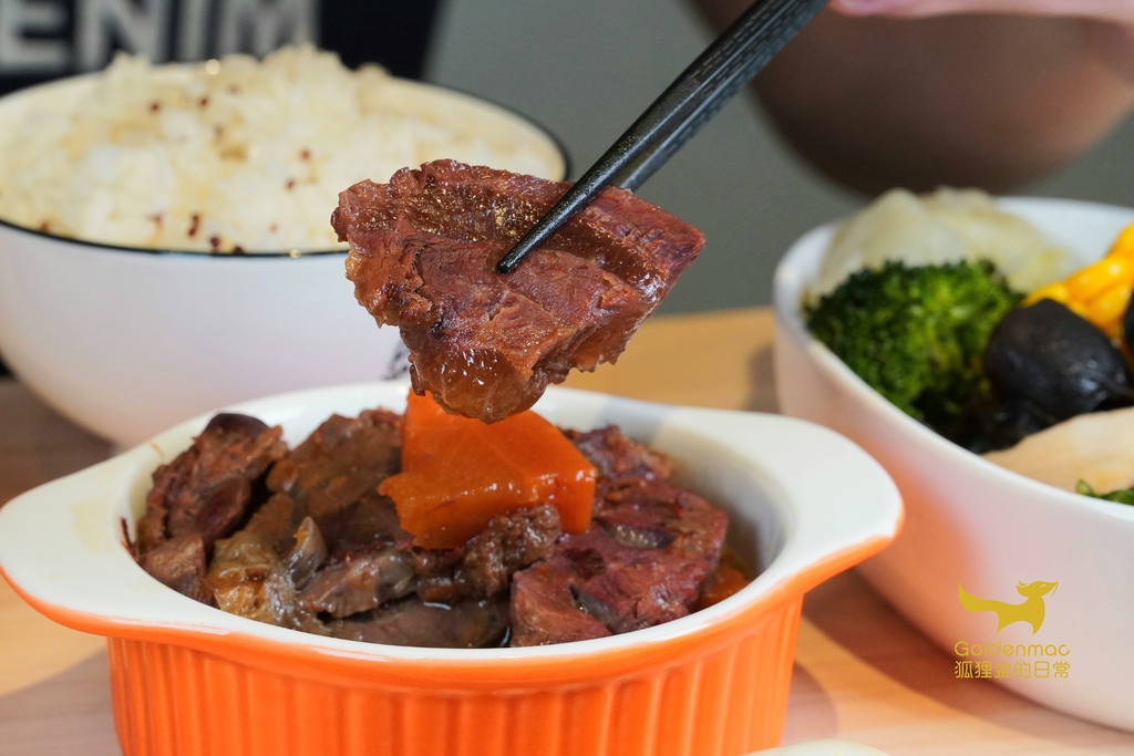 這蕃茄燉牛肉肉質真的沒話說,每塊牛肉都燉的非常軟嫩入味,加上紅白蘿蔔一起燉煮,小金連湯汁都不放過直接整碗給他淋在米飯上拌著一塊兒吃了。