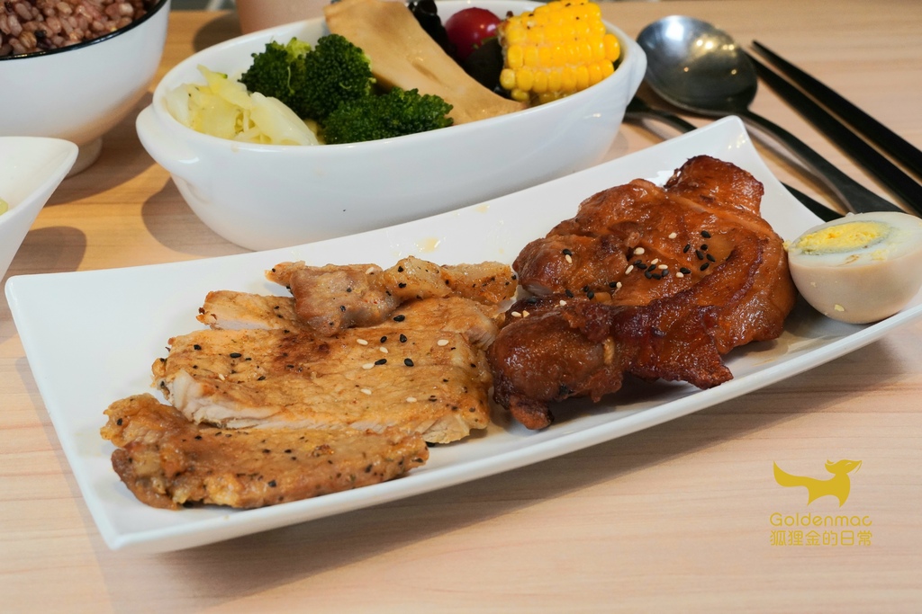 小金看不少來綠餐桌手作料理用餐買便當的朋友都會選擇搭配雙拼,一次滿足兩種享受,同行吃貨友人超推這款檸檬香氣十足的泰式雞腿,另外這義式的香烤里肌風味層次也是很讚的!而且小金特別喜歡這樣用烤的料理方式少了油膩感覺得負擔也減少了。