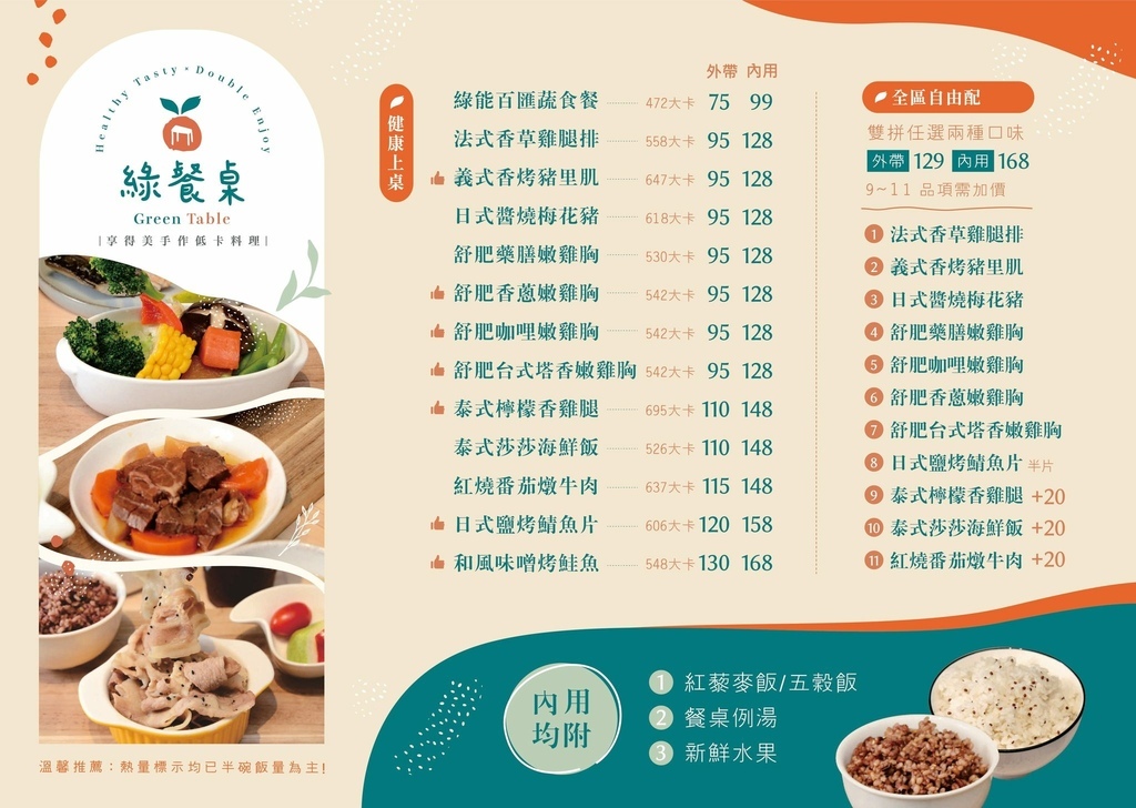 綠餐桌手作料理菜單(實際營業資訊依店家公告為主)