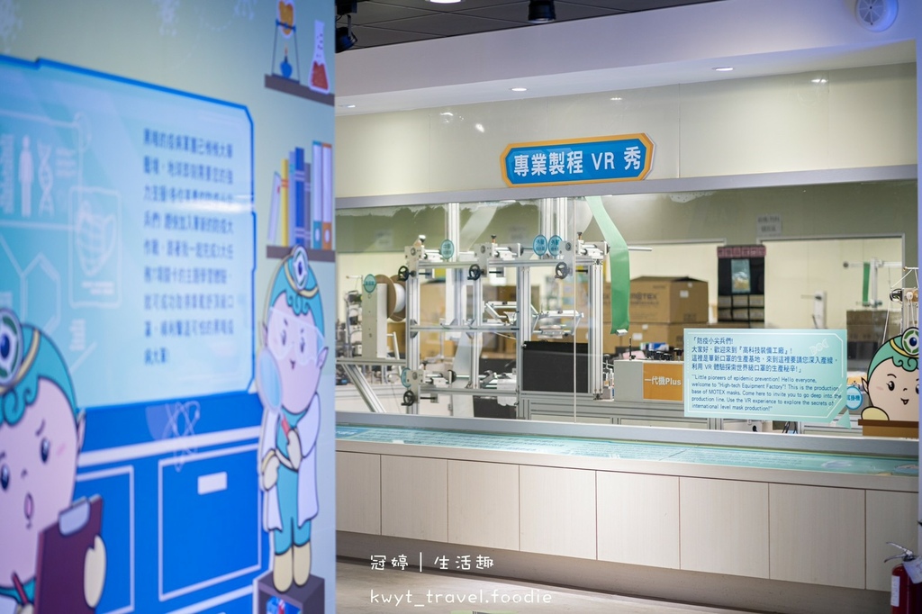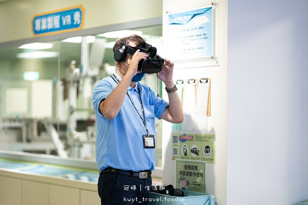 在高科技裝備區可使用一旁VR眼鏡輔助認識口罩製程。
