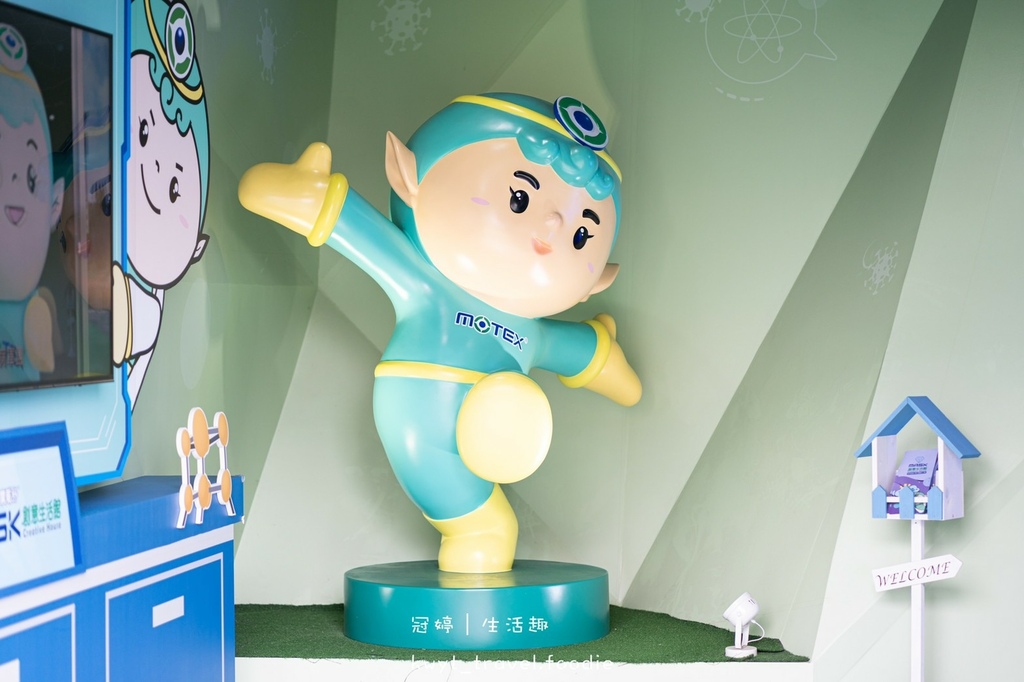 搭乘計程車、停妥機車、汽車的朋友們,跟著超~Q萌的華新口罩形象大使─摩戴舒寶寶的指引,即可走入華新口罩觀光工廠的空間參觀。