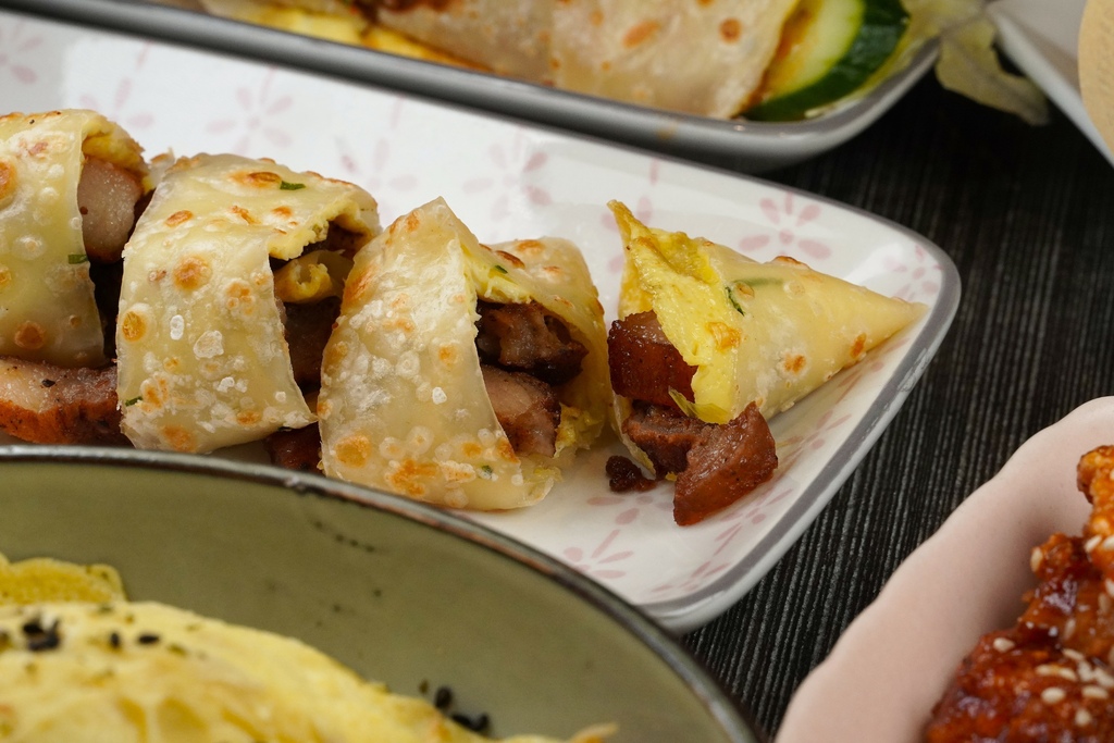 伊浢園早午餐用的鹹豬肉是有帶皮的,QQ的皮加上鹹香的滋味真的一口接著一口耶~這也是小金第一次吃到鹹豬肉風味的蛋餅,推推