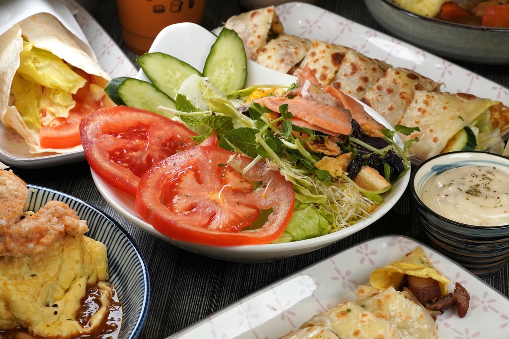 均衡飲食是很重要的,所以吃早午餐時小金都會特別點份沙拉,伊浢園早午餐這沙拉裡頭的蔬菜種類也是相當豐富,而且很特別的放上了一點薄荷葉,讓整份沙拉多了一個香味層次。