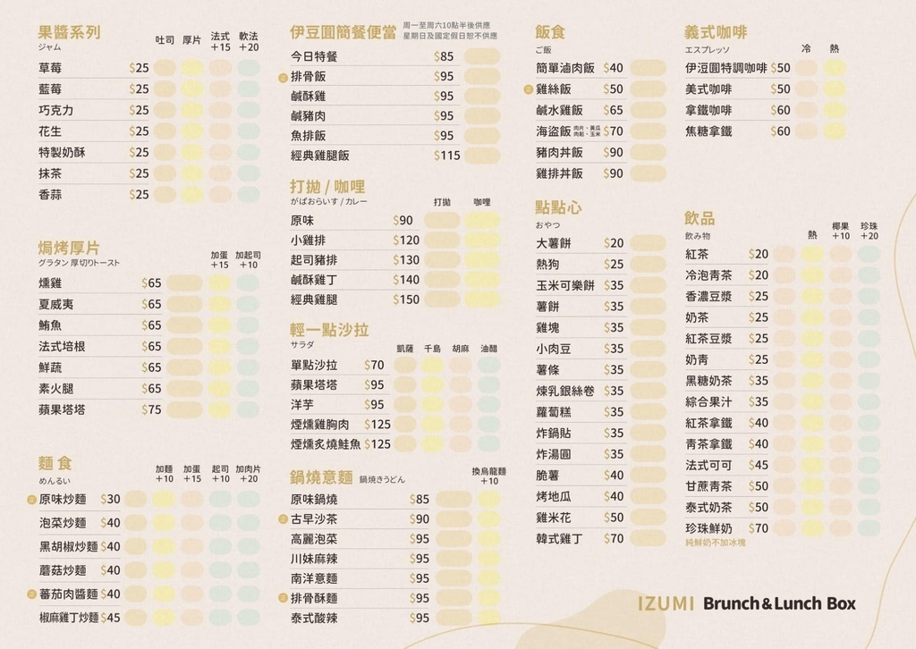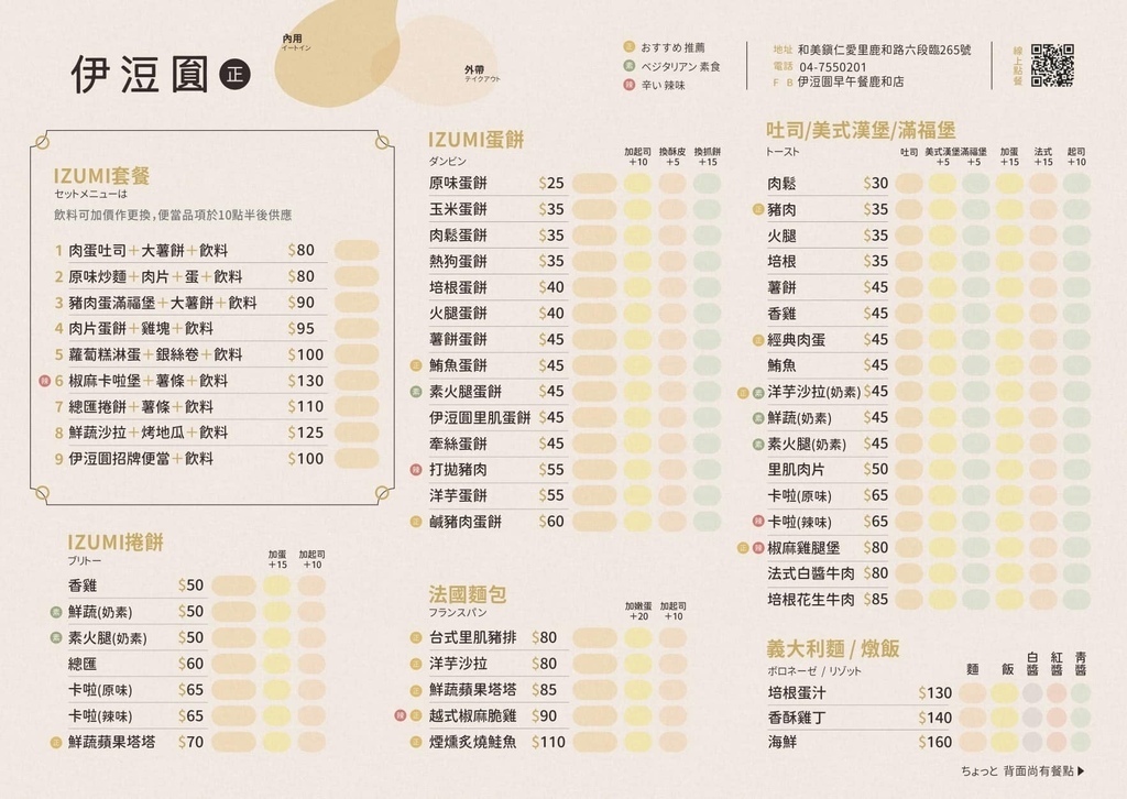 伊浢園早午餐鹿和店菜單(實際營業資訊依店家公告為主)