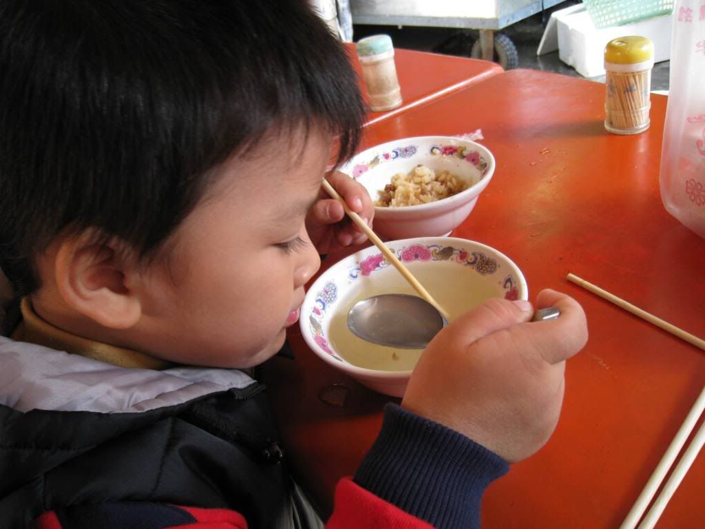 來不及拍的丸仔湯~上桌沒多久~就給這個小霸王佔了~不給拍~