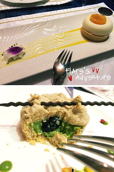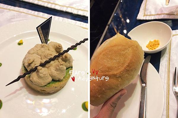 前菜還上了鮑魚釀番茄,首先先說番茄,口感真的超特別!!本來以為只是煮熟的番茄,但它本人完完全全就是個釀番茄!!完全不像番茄的釀番茄!!!!!(已經語無倫次XDDD)而鮑魚則是相當juicy有口感。