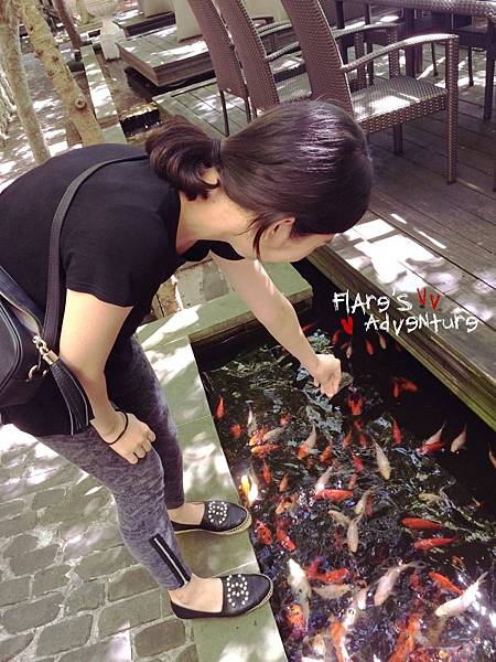 樓上的某一處居然養了一池的錦鯉,有些營養不錯XD 比了超級無敵假動作(根本沒飼料阿),沒想到吸引一堆錦鯉,超可愛!!!!!!!